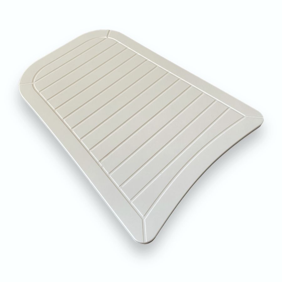 Gazišta izrađujemo od masivne plastike bijele boje koja je izuzetno otporna na vremenske i ekstremne uvjete koji vladaju na moru. Materijal se lako čisti, a s obzirom da se radi kompaktnom materijalu, za razliku od drva, izuzetno se lako održava. Najčešće se postavljaju na inox podkonstrukciju te predstavljaju dugovječnu alternativu drvenim gazištima.